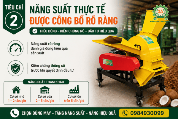 Đối với máy băm xơ dừa công suất lớn, năng suất là yếu tố quan trọng ảnh hưởng trực tiếp đến hiệu quả sản xuất. Vì vậy, bạn cần hiểu đúng và kiểm chứng rõ ràng thông số này trước khi quyết định đầu tư.