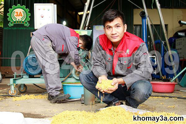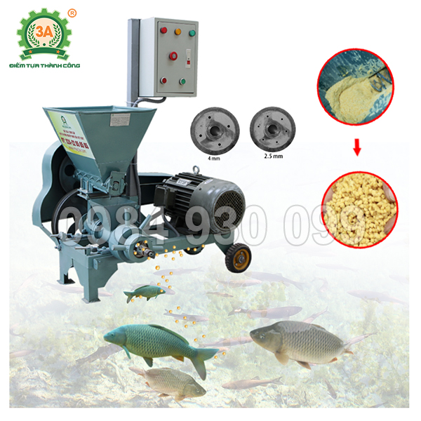 • Máy ép cám viên nổi 3A15kW là thiết bị chuyên dụng giúp bà con tự sản xuất thức ăn viên nổi cho cá, tôm và nhiều loại thủy sản khác. Máy có khả năng ép cám chín đều, nổi lâu trên mặt nước, giúp cá ăn hết, giảm hao hụt và hạn chế ô nhiễm ao nuôi.