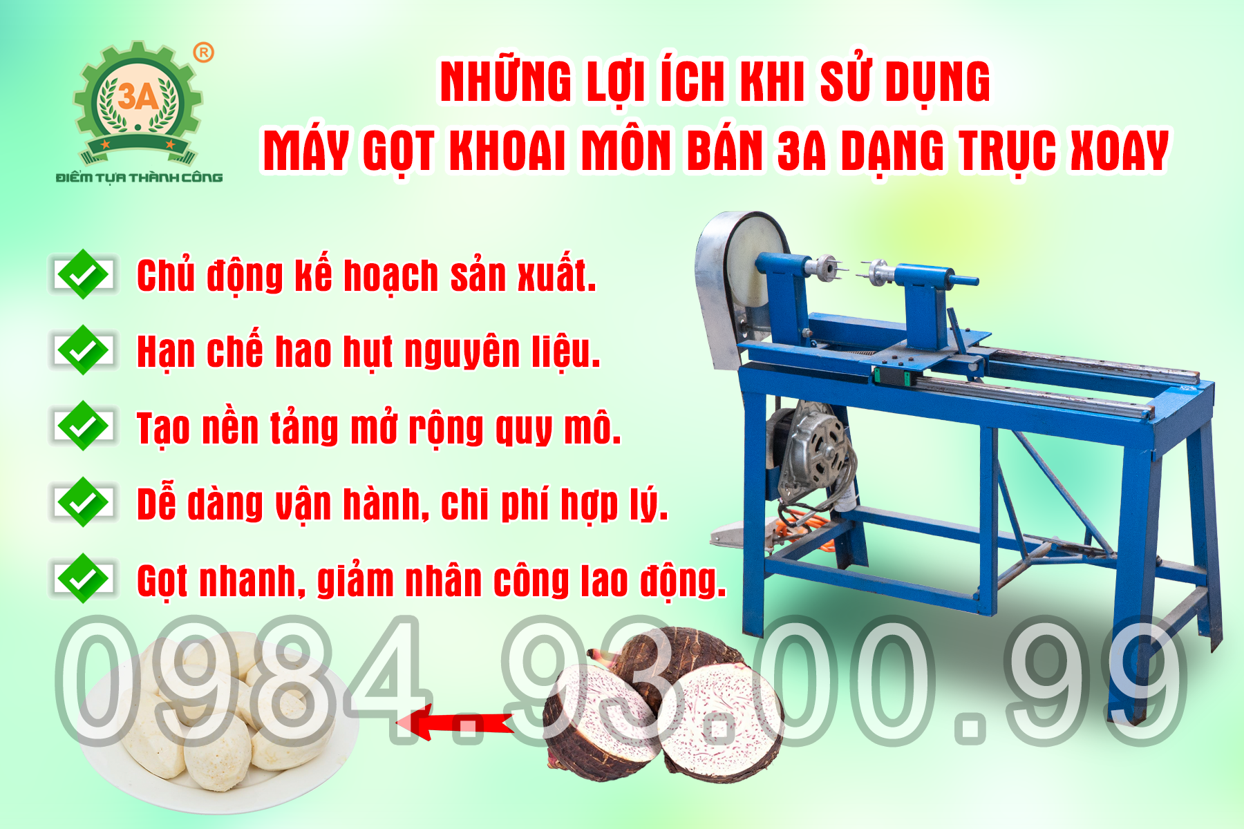 Nếu bạn đang tìm kiếm giải pháp sơ chế khoai môn nhanh, tiết kiệm nhân công và dễ vận hành, máy gọt khoai môn 3A là thiết bị đáng cân nhắc cho cơ sở sản xuất.