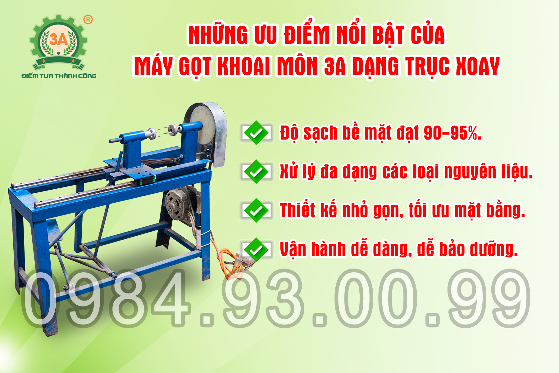 Thiết bị được thiết kế theo cơ chế trục xoay kết hợp ray trượt điều khiển dao, giúp người vận hành dễ kiểm soát quá trình gọt và hạn chế hao hụt nguyên liệu.