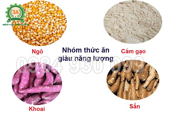 Đây là nhóm nguyên liệu chiếm tỷ lệ lớn trong khẩu phần, đóng vai trò cung cấp năng lượng chính cho vật nuôi: