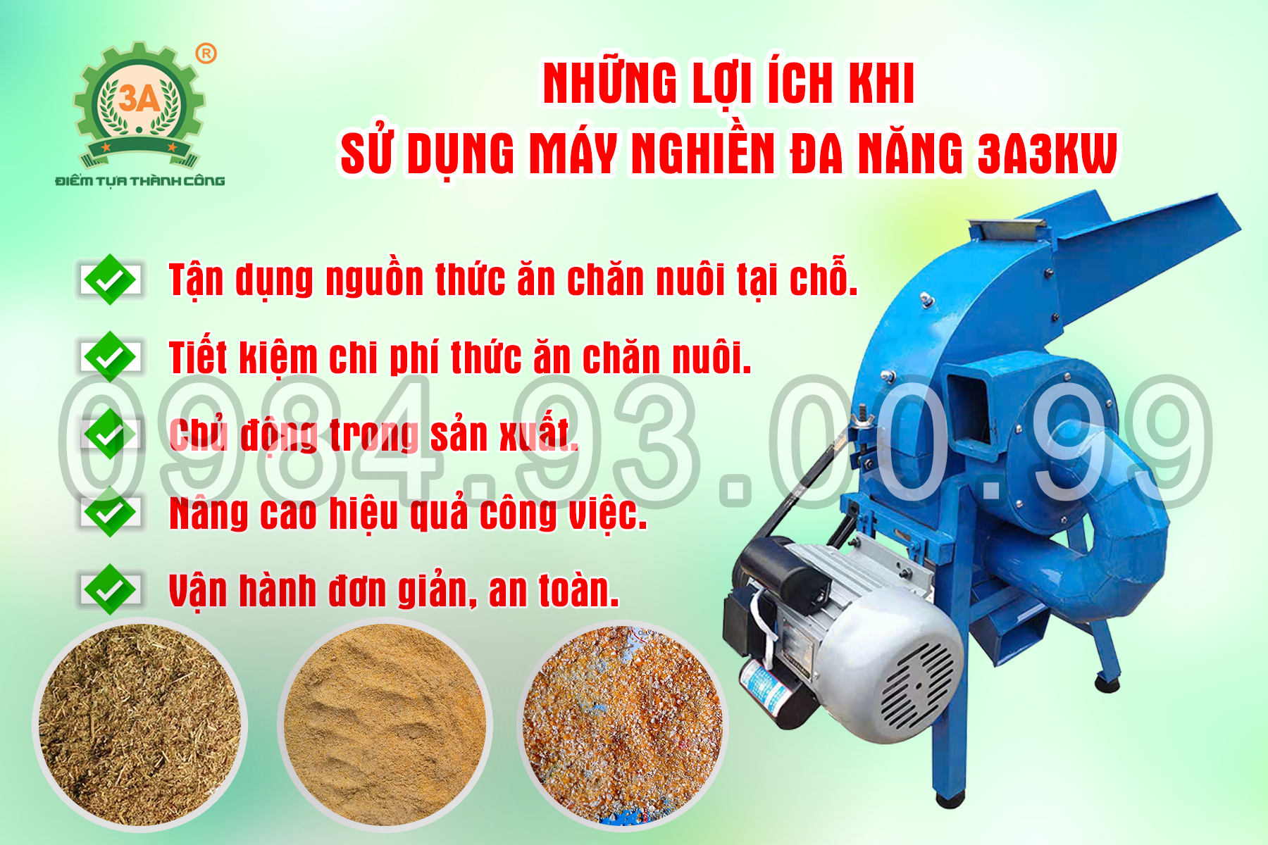 Nếu bạn đang tìm kiếm một giải pháp toàn diện để giảm chi phí thức ăn chăn nuôi và tận dụng triệt để phụ phẩm nông nghiệp, máy nghiền đa năng 3A3kW chính là lựa chọn thông minh nhất.