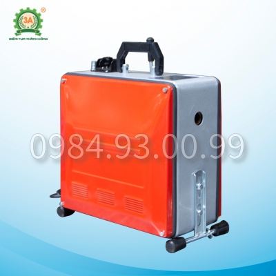 Máy thông tắc cống GQ150 3A900W có thiết kế khá đơn giản và tiện ích. Máy có hình dạng như một chiếc vali với tay cầm quai xách tiện dụng, giúp người sử dụng dễ dàng di chuyển từ nơi này đến nơi khác để thông cống hoặc bảo quản.