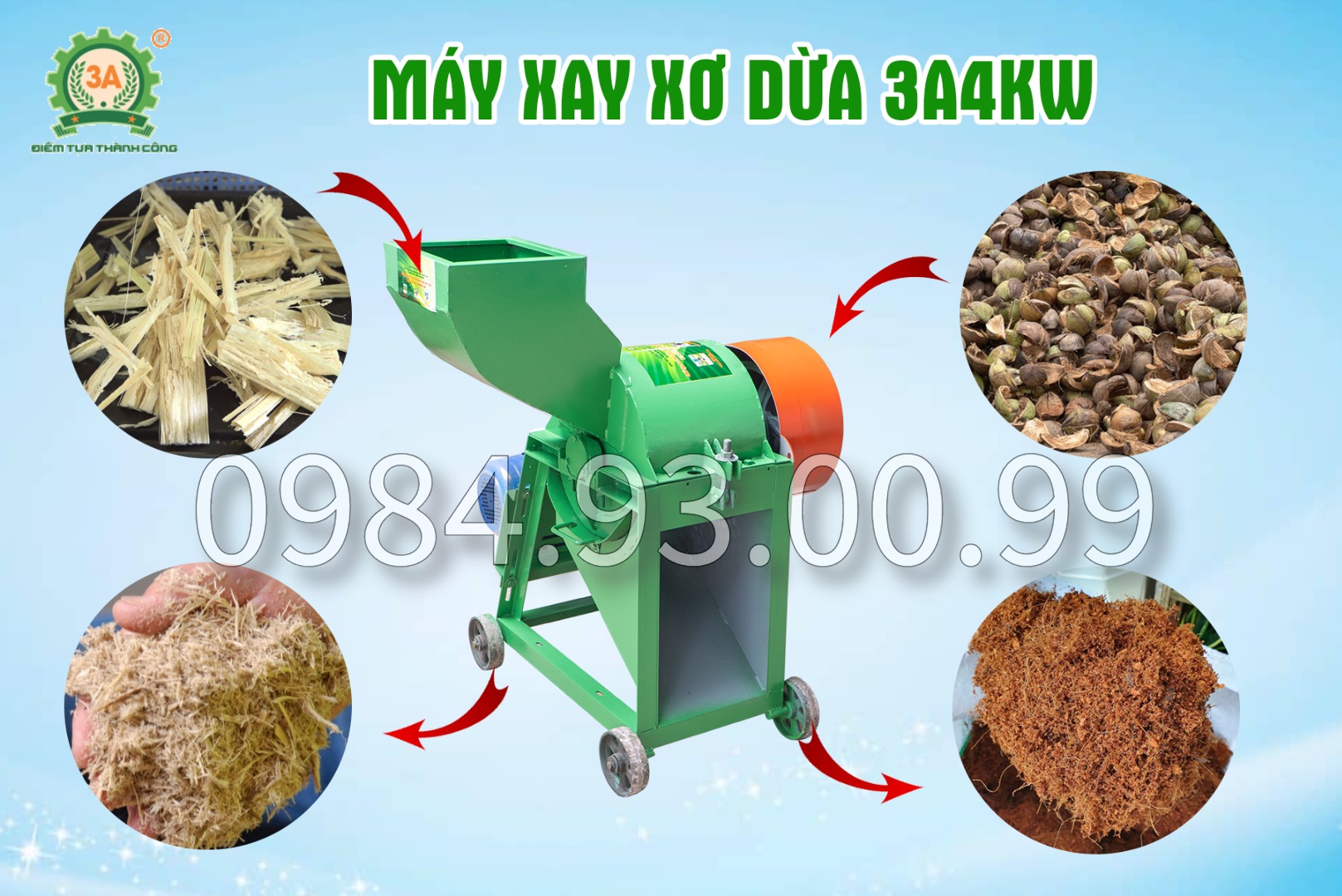 Tham khảo chi tiết sản phẩm tại: Máy xay xơ dừa 3A4kW